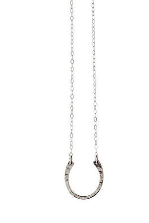 We all need some lucky charms in our lives right? Wear this hand forged horseshoe for luck, so lightweight and way easy you won't know you are wearing it! Layer it with other Kenda Kist pieces! It's great with the long oval necklace and the silver bullet! Available in Sterling Silver or 14k Gold-Filled chain.