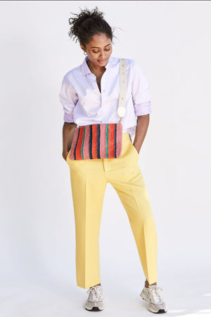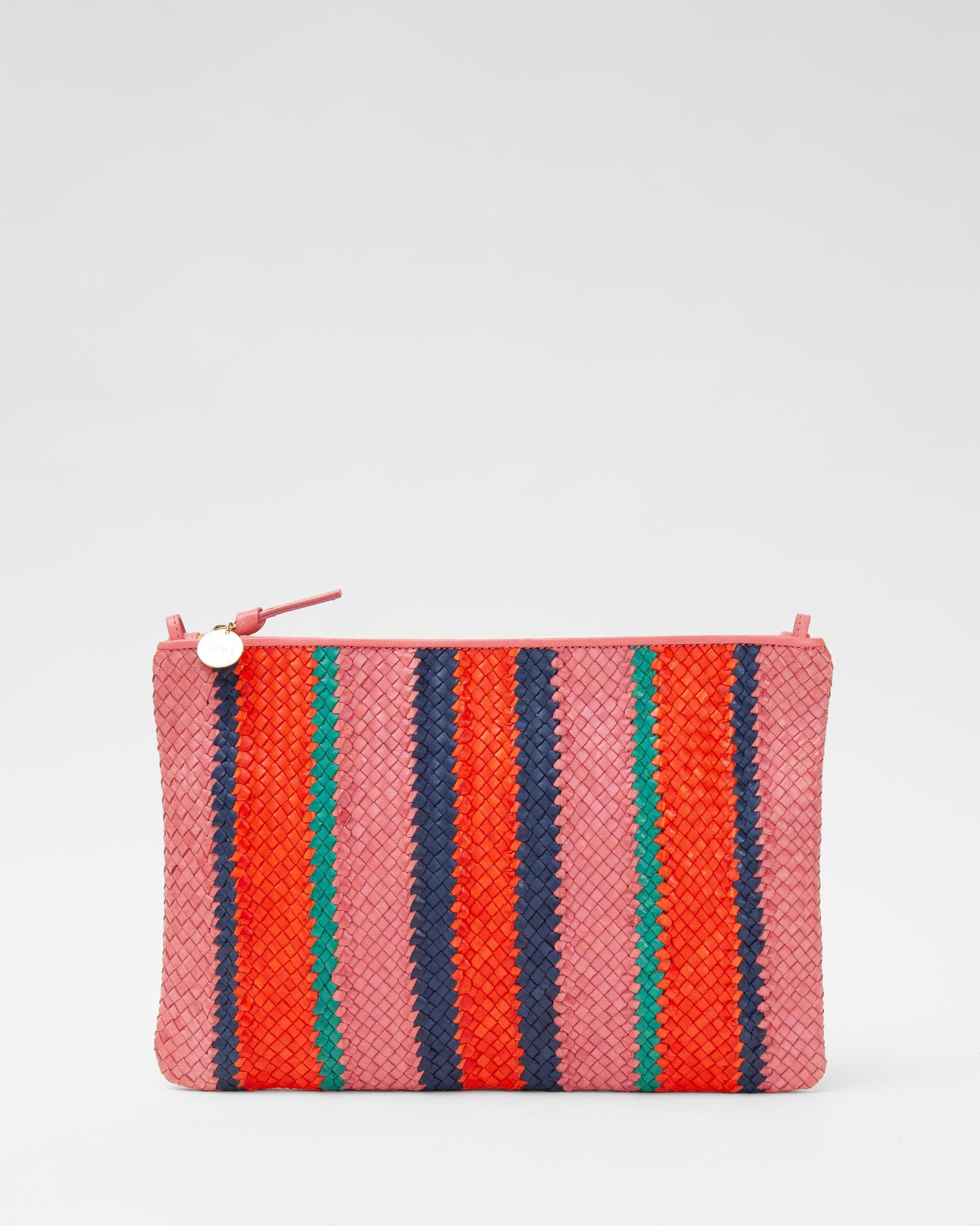 The Flat Clutch has been a Clare V. staple for over 10 years. The Flat Clutch with Tabs takes a best seller and makes it twice as great. Now you can attach a shoulder strap onto the end tabs, converting the clutch into a mini zip-top tote.