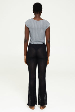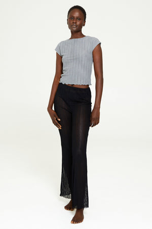 Our Ribbed Mesh Legging is perfect for the beach or a daring night out. The silky mesh fabric is comfortable and breathable, hugging the hip through the thigh and flaring at the knee.