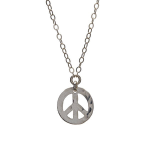 Promote peace in the Peace Sign Necklace. Its daintiness is perfect for everyday wear – layered or solo. Hand-forged in 14k Gold Filled or Sterling Silver. Each charm is delicately hammered for a textured finish. 1/2in peace sign charm on cable chain.