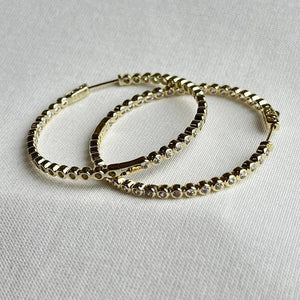 Add a brilliant sparkle to any outfit with the Eliza Hoop! Crafted from CZ stones, these stunning hoops will be the perfect addition to your accessory collection. Enjoy the elegance they add to your everyday look! 2" 18k Gold Plated over Stainless Steel Cz Stones Hypoallergenic & Tarnish Resistant