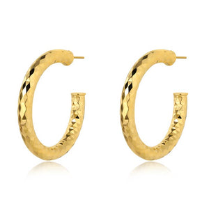 Add a golden glimmer to any outfit with the Madisen Hoop! This imprinted piece is perfect for adding a subtle (but stylish!) flair to your jewelry collection. A perfect pick-me-up for your wardrobe, it's sure to become your go-to accessory! * 20 mm, 30 mm, & 40 mm * 18k plated over Stainless Steel * Water & tarnish resistant
