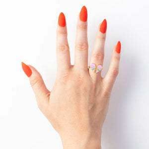 Jazz up your hands with our NEW 18k gold-gilt adjustable rings for all hands and occasions! Their vivid cloisonné designs are sculpted on durable and tarnish-resistant bands. They fit the most common ring sizes (US 6 and up!) and can be adjusted time and again without breakage. Nickel, lead, and cadmium free. Presented in our gift-ready glass vial with cork.