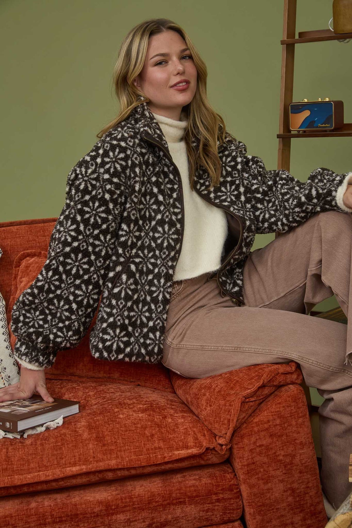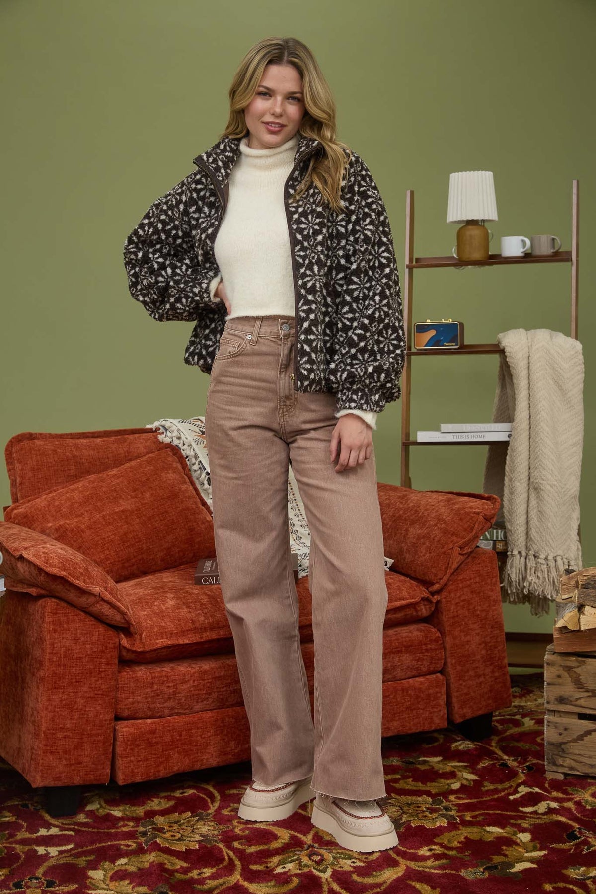 NYLAND Lavilla Snowflake Zip-Up Sherpa Jacket
