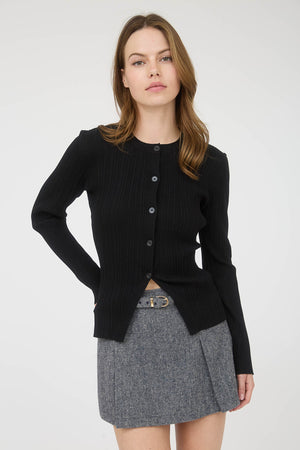NYLAND Lockie Stripe Knit Pattern Button Down Split Hem Cardigan