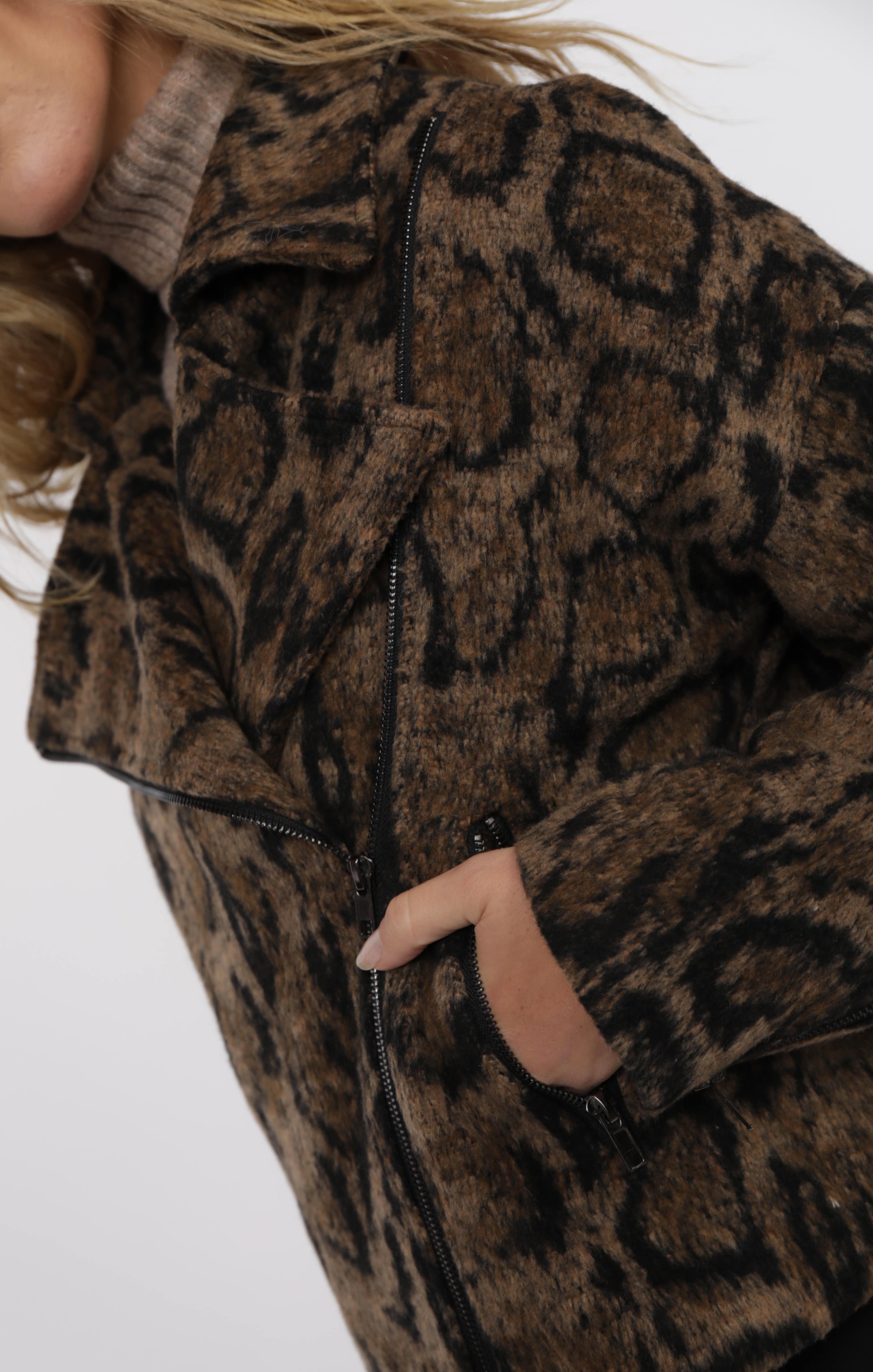 SAGE THE LABEL Strada Brushed Vegan Leopard Oversized Jacket