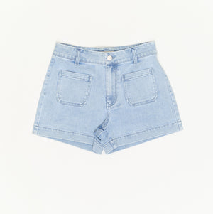 Look and feel confident in Oat NY's High-Rise Wide Leg Patch Pocket Shorts. Crafted from stretch denim, these stylish jeans feature a classic vintage look and a flattering fit. Show off your curves and these jeans' unique patch pockets - perfect for any occasion!