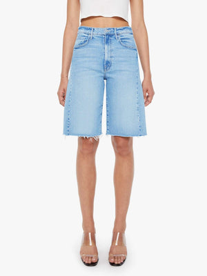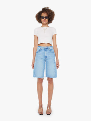 Super high-waisted Bermuda shorts with a wide leg, knee-length inseam and a frayed hem. Cut from semi-rigid SUPERIOR denim, Sow Surreal is a light blue with whiskering and fading throughout.