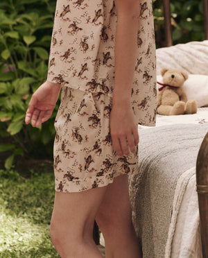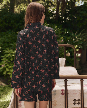 Inspired by classic men’s pajamas, The Square Pajama Short is an abbreviated take on sleep bottoms. Designed to be slouchy and comfortable with an elasticized waist and dropped rise, these shorts are cut from soft, light and airy cotton and trimmed with contrast piping.  They pair back to The Pajama Shirt for a breezy, warm-weather look.
