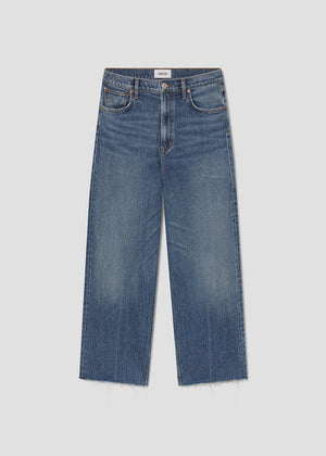 AGOLDE's Ren Jean from the Weightless Collection offer the perfect blend of comfort and style. Made from regenerative cotton, they feature a high-rise waist and cropped wide legs for a relaxed yet flattering silhouette. The lightweight fabric ensures all-day comfort, making them ideal for casual wear. Pair them with a half-tucked tee for a cool, effortless look.