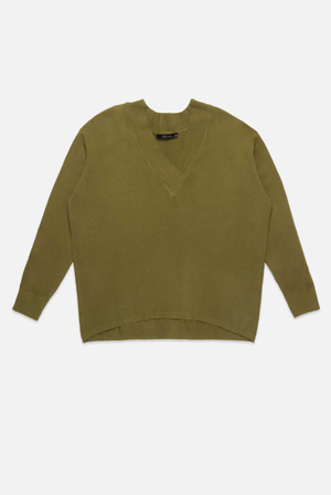Viscose blend sweater with V neckline and long sleeves. Rounded bottom on front, longer at the back. Ribbed cuffs Fit: relaxed Model is 175cm / 5'9"" wearing size S