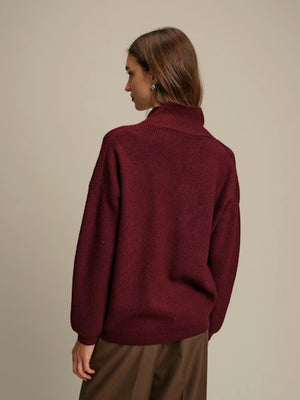 A lightweight long-sleeve wardrobe staple sweater in a flattering v-neck. Now available in fall's hottest wine color.