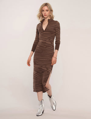 The Sonoya Dress is a dream. Made of an ultra-soft jacquard knit, it contours and molds to the body perfectly while showing a bit of skin thanks to its zip front and side slit. Pair with heels or flats for those days when you can't be bothered to try.