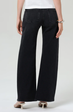 Looks Like: Dark washed black denim pant