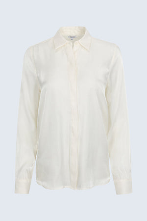 A timeless button-up, Tilda features a relaxed fit and long sleeves that balance soft structure with modern ease. Designed with a pointed collar and subtle sheen for quiet polish. Crafted from a smooth woven blend in Ecru, a clean neutral that transitions seamlessly from day to night.