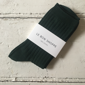 Enjoy the ultimate comfort in Le Bon Shoppe's signature trouser sock. The perfect height, these knit rib socks, made with Mercerized Combed Cotton, brings a sophisticated edge to your sock game.