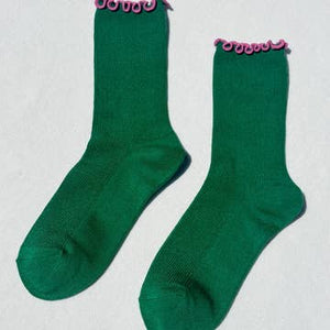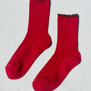 A sock born from Le Bon Shoppe's shared love of slow fashion, good design, and color combos that go with literally everything. The Ruffled Modal Socks feature a baby rib texture with a playful lettuce-edge ruffle at the top. Their versatile crew length makes them perfect worn long or scrunched down.