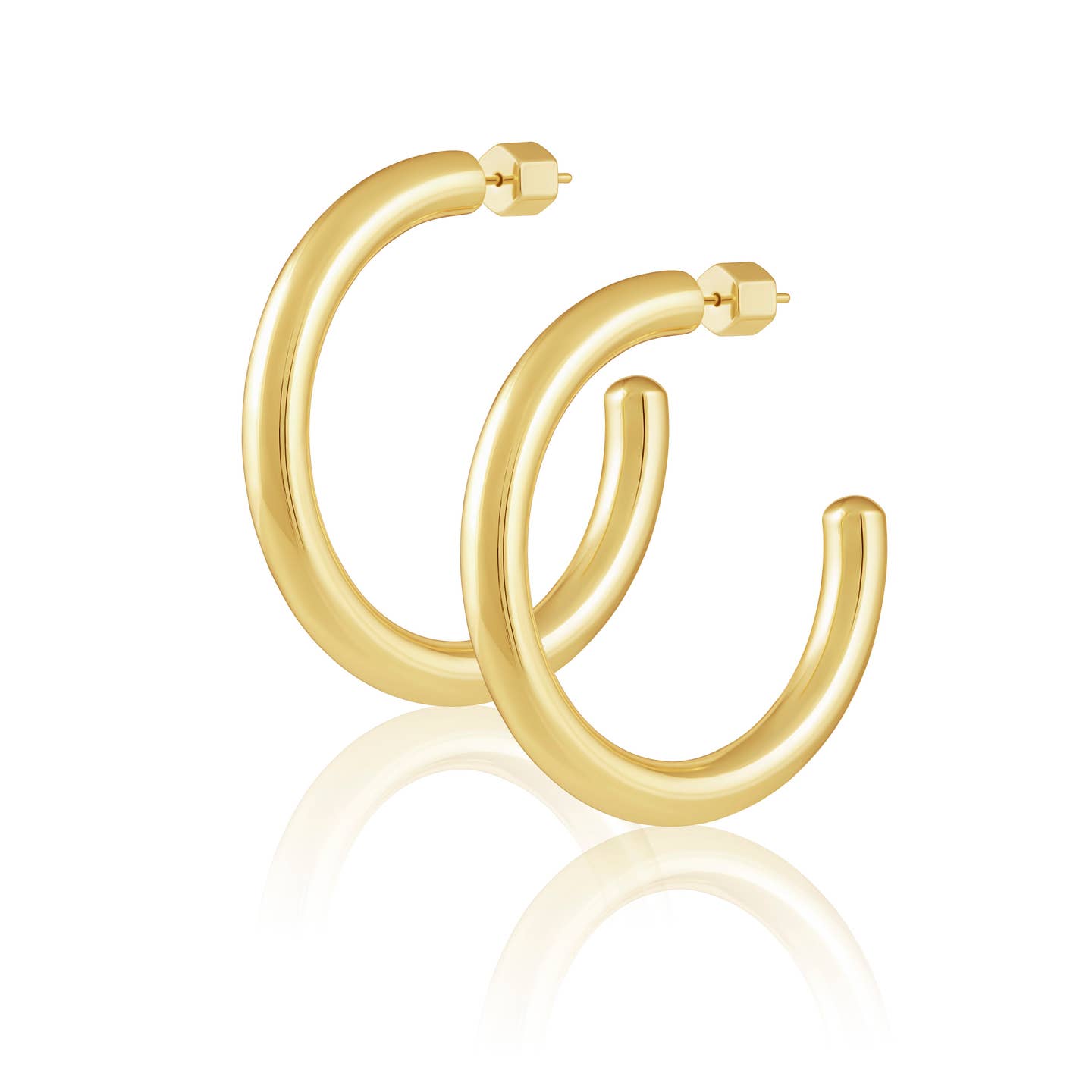 Your outfit is not complete without our Rina Hoops. An absolute must for your jewelry collection, featuring a gorgeous classic hoop with an 18k plated post.