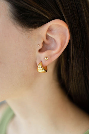 Show off your playful style with these charming puffy heart earrings! Crafted from gold, these studs are perfect for adding a touch of fun to any ensemble.
