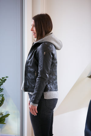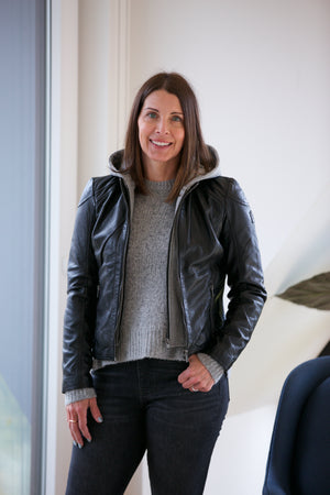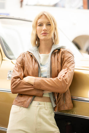 This Allice RF Leather Jacket in Cognac is the epitome of sophisticated style. Its perfect combination of Mauritius' Nola and Finja jackets. It offers a versatile look that can be dressed up or down. The removable fleece hood adds a touch of luxury and practicality. Elevate your wardrobe with this casual yet classy piece.