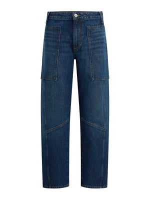 A mid rise with a relaxed fit in the waist and hips and modest barrel-shaped leg that falls to the ankle.