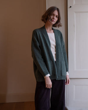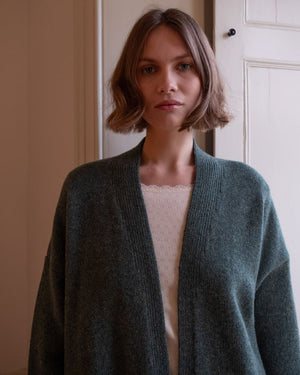This is a BIBICO favorite coat cardigan. A heavyweight open cardigan with an oversized silhouette and no buttons, it’s the perfect piece for effortlessly layering. Made from pure Merino lambswool, this cardigan is soft, cozy, and wonderfully warm. It features laid-back drop shoulders, wide sleeves, and oversized patch pockets. The yarn, from a Scottish mill with over 200 years of heritage, is spun with an extra twist to boost its durability and minimize pilling. This piece isn’t just stylish; it’s built to last and keep you feeling snug season after season.