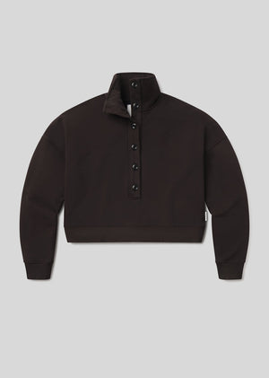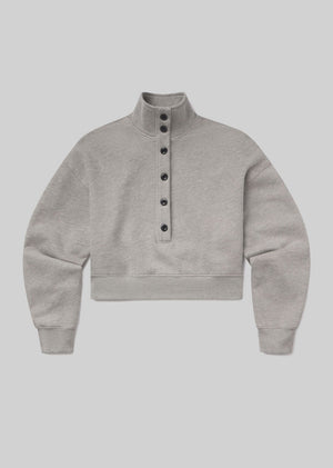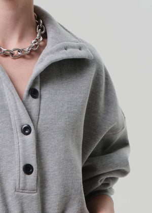The ‘Mirelle’ is a modern update to the classic sweatshirt, crafted from soft brushed fleece with a plush, cozy feel. Designed with a high funnel neckline and button closure, the relaxed silhouette offers warmth and polish in equal measure. Ideal for off-duty layering or elevated lounging.