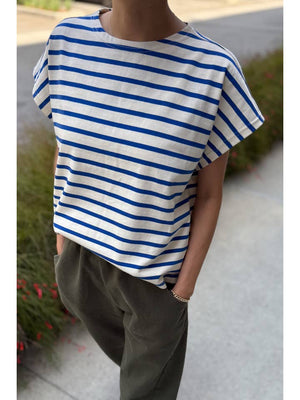 Add a touch of Parisian flair to your wardrobe. The Marseille Top takes inspiration from the timeless Breton stripe uniform, featuring a classic boat neckline and an oversized, full-length fit that gently sweeps the hips. Crafted from durable, heavyweight cotton, it offers structure without sacrificing softness, making it an ideal choice for both elevated and casual looks.