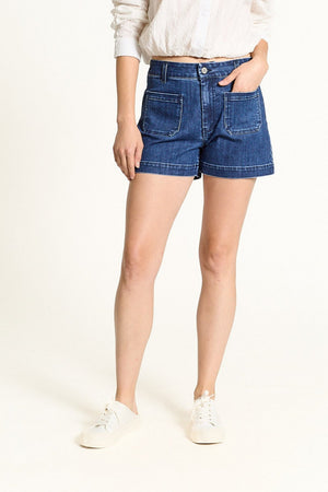 Look and feel confident in Oat NY's High-Rise Wide Leg Patch Pocket Shorts. Crafted from stretch denim, these stylish jeans feature a classic vintage look and a flattering fit. Show off your curves and these jeans' unique patch pockets - perfect for any occasion!