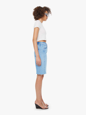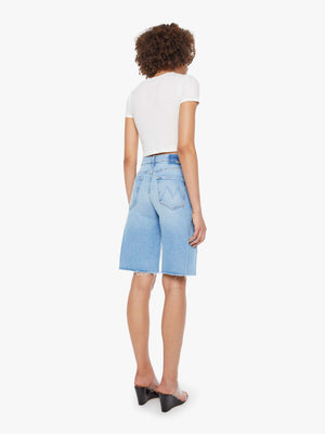 Super high-waisted Bermuda shorts with a wide leg, knee-length inseam and a frayed hem. Cut from semi-rigid SUPERIOR denim, Sow Surreal is a light blue with whiskering and fading throughout.