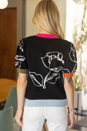 Unlike standard florals, The Frida Top merges a vibrant floral print with color-block ribbed detailing, giving it a distinctive frame that accelerates from casual to dressy with simple accessories. The short puff sleeves and round neckline create a flattering silhouette that suits a range of body shapes, while the knit fabric delivers comfortable stretch without losing structure.