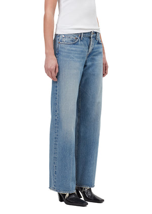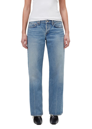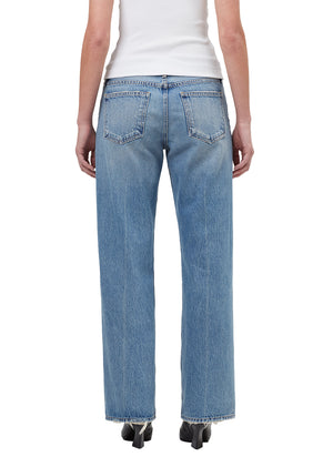 The Low Rise Loose Jeans features a low-rise fit, square top block, and a relaxed leg creating an early-2000s feel. Crafted in a medium worn in indigo, this non-stretch denim offers structure with a soft, lived-in touch. Made from regenerative cotton, these jeans are the ultimate laid-back silhouette—no effort required.