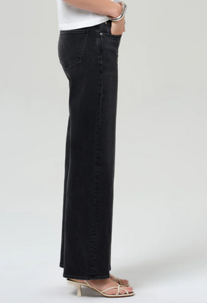 Looks Like: Dark washed black denim pant