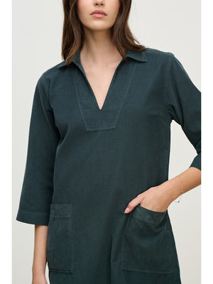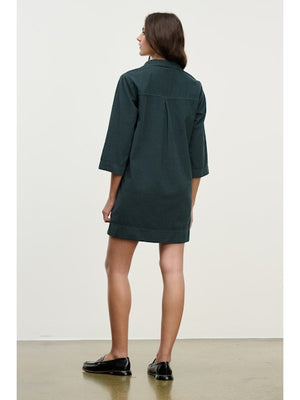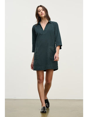 Effortlessly chic, this mini dress is crafted from soft cotton corduroy and features a classic collar, flattering V-neckline, and 3/4 sleeves. Two front patch pockets and a pinch pleat at the rear add thoughtful detail, while a detachable belt lets you define your silhouette. A comfortable and stylish choice for everyday wear.