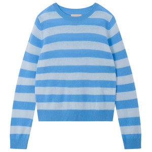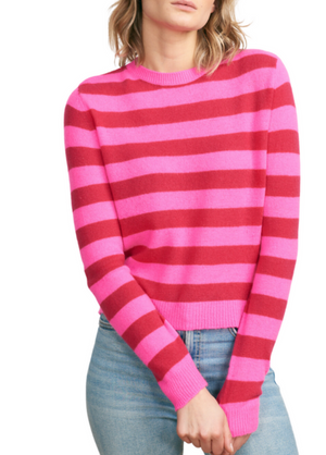 Add a pop of color to any look with this lightweight, pure cashmere sweater showcasing wide contrasting stripes! Featuring a crew neckline, ribbed trim, and a slightly shorter length for an elevated knitwear style.