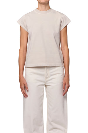 Looks Like: Clean white crewneck tee with cap sleeves