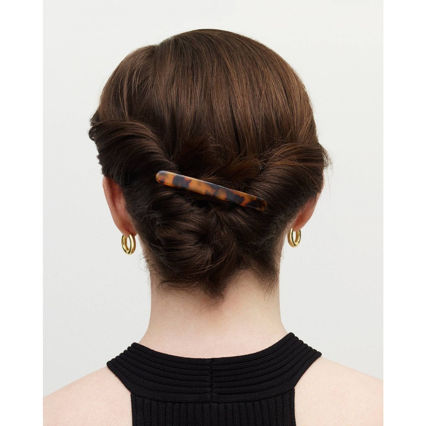 A classic French barrette, handmade in Paris from fine Italian acetate. The flexible spring clasp securely holds small-to-medium amounts of hair. Suitable for all hair types and textures.