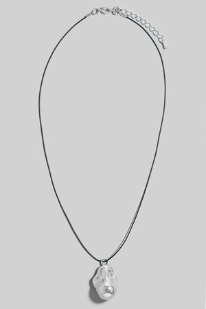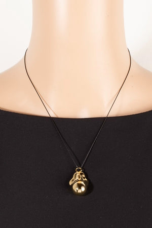 NYLAND's Irregular Shape Metallic Pendant Dainty Cord Necklace blends sculptural charm with everyday wearability. Made in Korea, it pairs a distinctive brass-toned pendant with a slim polyester cord for versatile, stylish appeal.