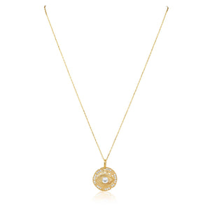 Radiate confidence when you wear the Paige Evil Eye Necklace. Embellished with CZ stones to ensure your true self is sparkling from within. -18k gold over sterling silver