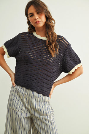 The NYLAND Eliska Scalloped Knitted Top is a breathable 100% cotton piece designed for everyday wear with a touch of feminine detail. Crafted for those who value versatile, easy-to-style staples, its delicate scalloped edges elevate casual outfits with subtle refinement.