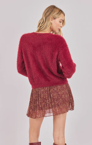 Soft, fluffy, and so festive. The Fern Feather Cardi brings instant texture and charm to any outfit with its feather-like knit and rich berry hue. Designed with a classic button front and relaxed fit, it’s the perfect throw-on layer for chilly days, holiday gatherings, or adding a pop of cozy luxe to your everyday look. Pair it with denim, skirts, or over a simple tee for an adorable, effortlessly styled moment.