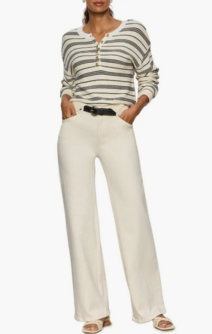 Effortlessly chic and endlessly versatile, this striped henley sweater from Sanctuary brings textured sophistication to your everyday wardrobe. Natty stripes punctuate the cotton knit, while the appealing henley neckline adds a touch of casual refinement that transitions seamlessly from weekend errands to relaxed evenings.
