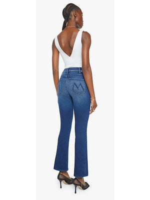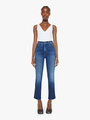 Roll the dice. This bestselling high-rise flare has an ankle-length inseam and a clean hem. Made from stretch denim, Taking Chances is a dark blue wash with whiskering and fading at the knees.