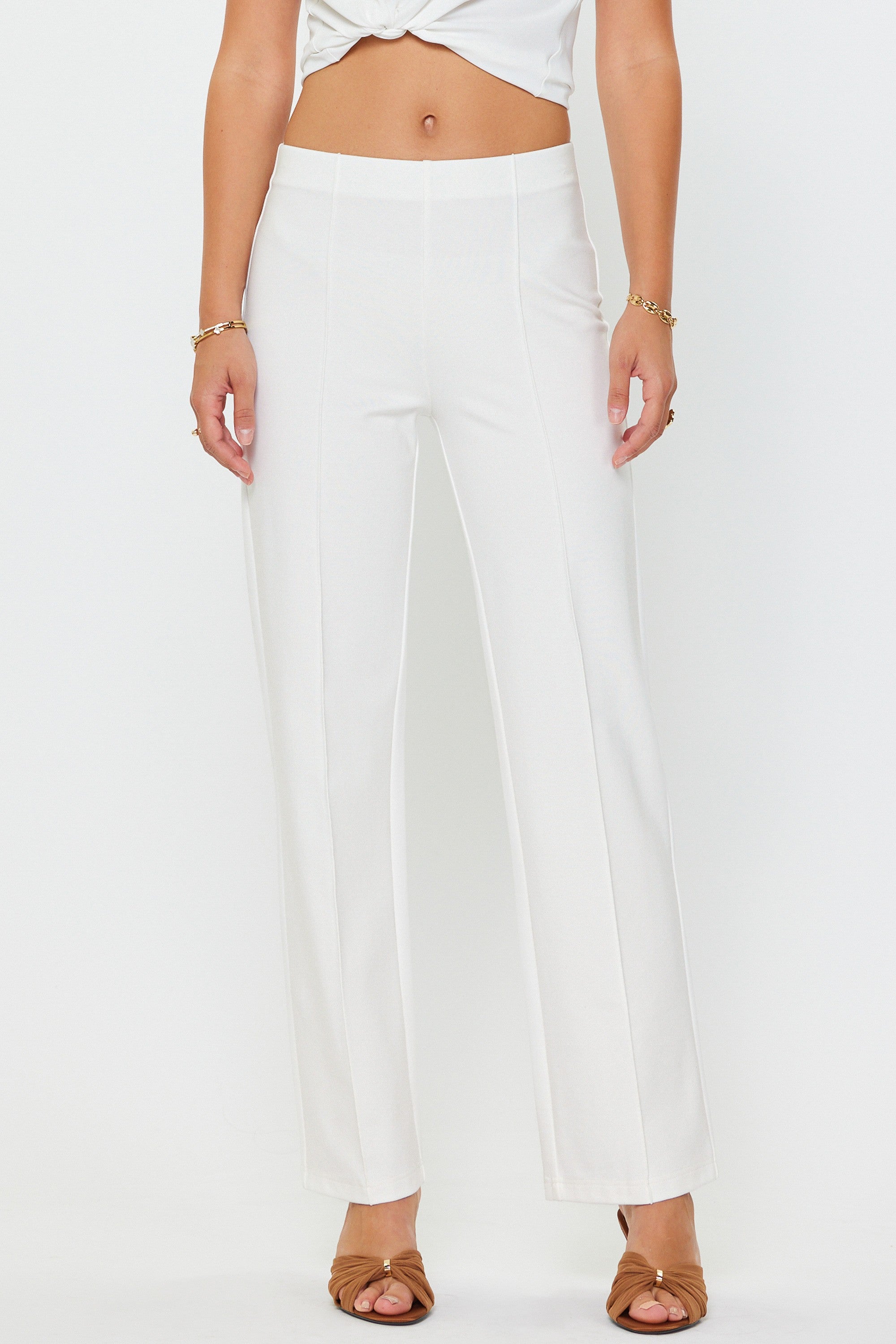 • Straight leg with center seam: Clean, elongated silhouette that pairs easily with sneakers, flats, or heels.
