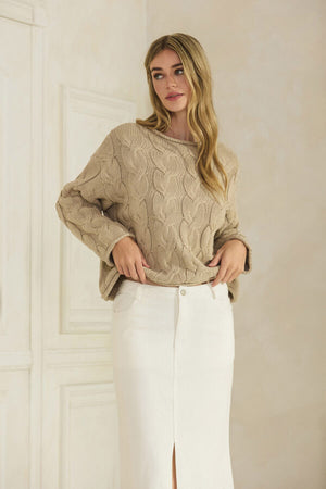The NYLAND Zuzu Cable Knit Sweater is a relaxed pullover designed for everyday comfort. Crafted in 100% cotton with a soft cable-knit texture and chunky handfeel, it effortlessly elevates casual outfits while staying comfortable all day.