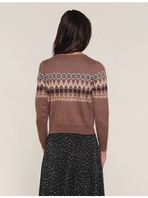The Keane Cardi is a crew neck cardigan, made from a super soft yarn. It features a winter jacquard pattern and novelty buttons.