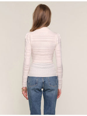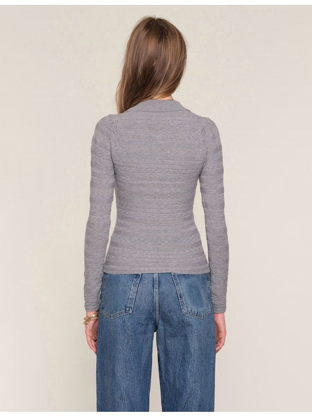 The Romero Top is a slim fit, polo top. It's made from a delicate pointelle and features novelty pearl buttons and a self collar.