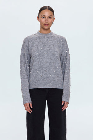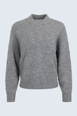 The perfect everyday sweater, Aura combines a relaxed fit and classic crew neckline with delicate crystal embellishments for a hint of subtle shine. Knit with a soft drape that layers effortlessly over denim or trousers. Charcoal Diamante, a deep gray hue, adds understated glamour to the season’s rotation.