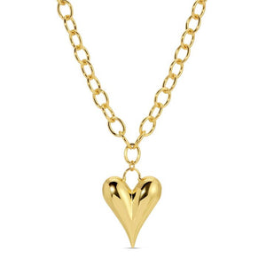 Make a bold impression with this 20" Statement Necklace, featuring a unique elongated bubble heart charm. Fun and stylish, this design adds a touch of whimsy to your outfit. 20" Necklace 1.1" x 1.5" Pendant 18k Gold Plated Brass Base
