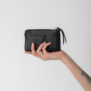 The Minimalist Wallet is designed for those who value simplicity, function, and timeless craftsmanship. Handcrafted from full-grain leather, it features a built-in five-card wallet, an exterior zipper pocket for small essentials, and a secure top zipper closure. Compact yet practical, it keeps your essentials organized without the bulk—perfect for everyday carry or slipping into your favorite bag.